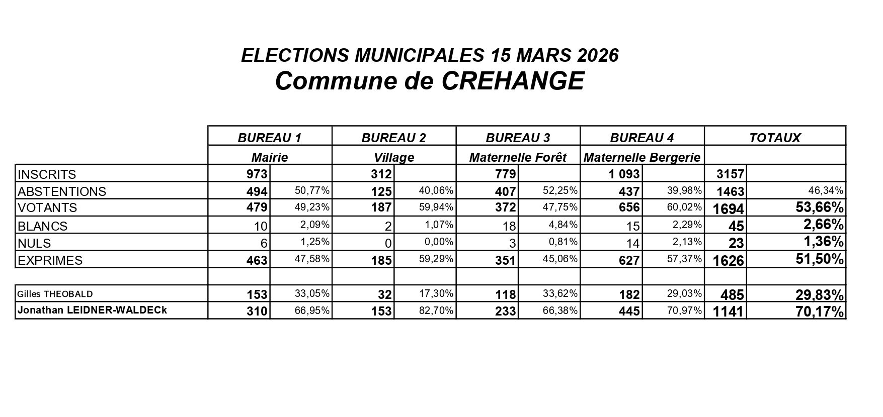 Merci encore à chaque Créhangeoise et à chaque Créhangeois pour cette confiance qui nous est accordée.