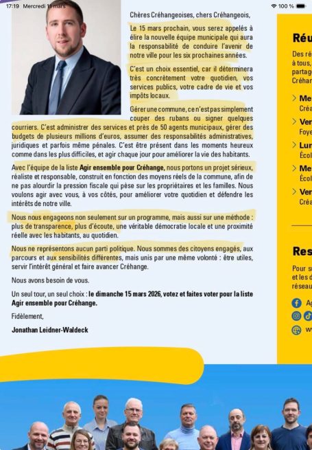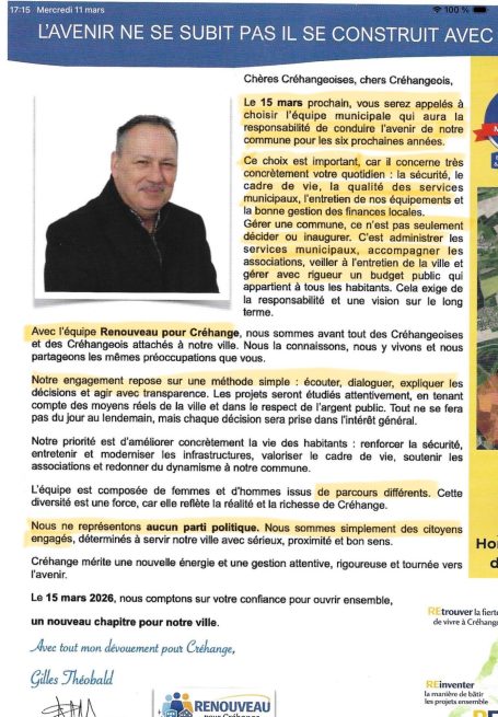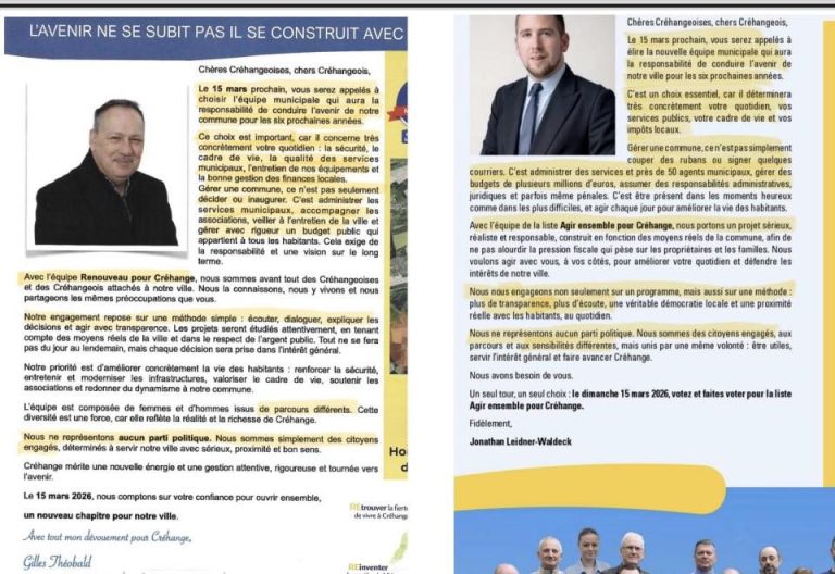Les Créhangeois méritent mieux qu'une tentative de tromperie électorale !