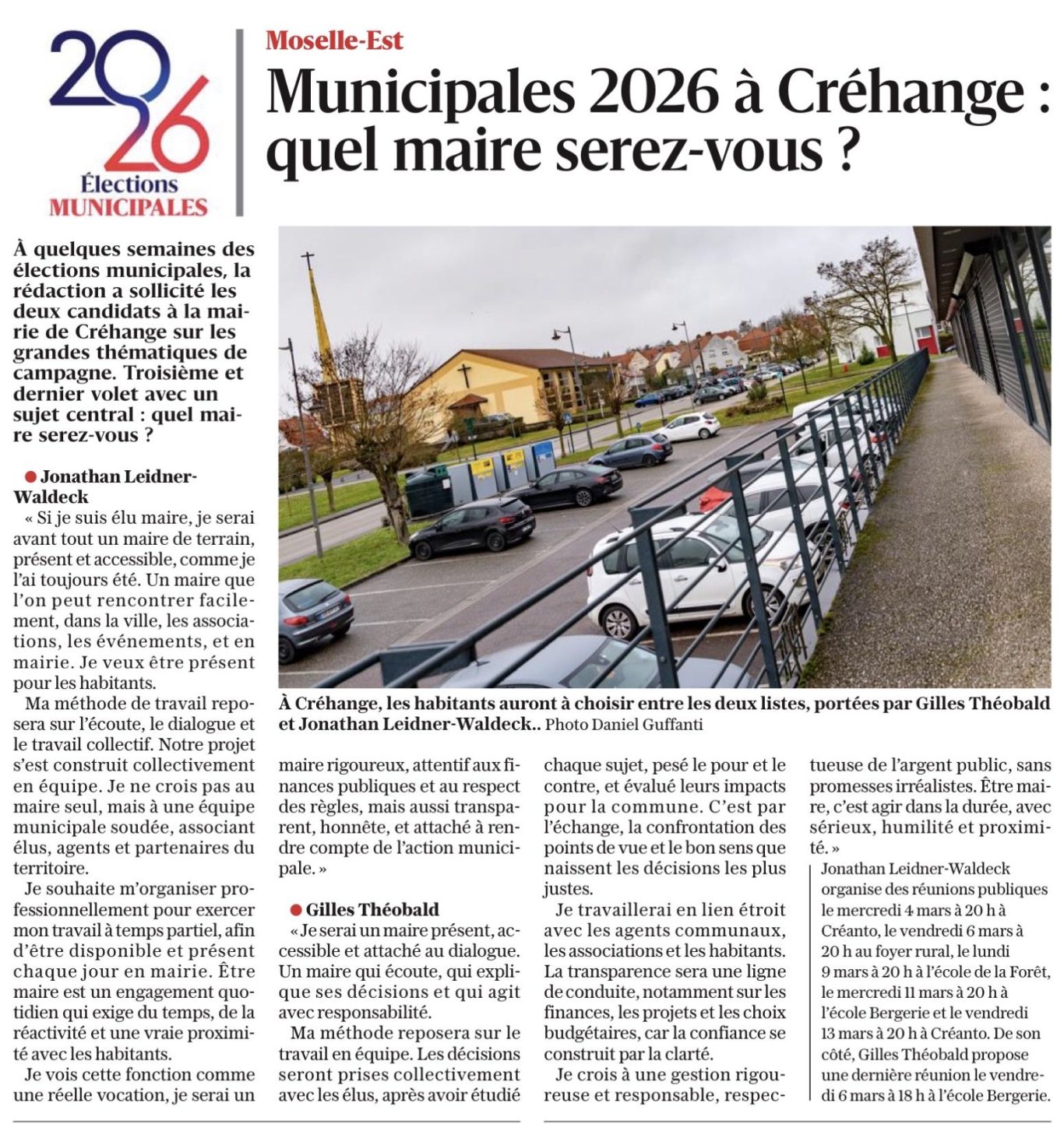 N'hésitez pas à suivre ces annonces sur notre page Facebook "Agir ensemble pour Créhange" et notre compte Instagram @pourcrehange2026 !