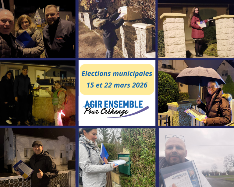 Depuis plus d’un an maintenant, nous nous réunissons régulièrement en équipe pour construire le projet que nous proposerons aux Créhangeoises et aux Créhangeois et pour organiser, pas à pas, notre campagne électorale.