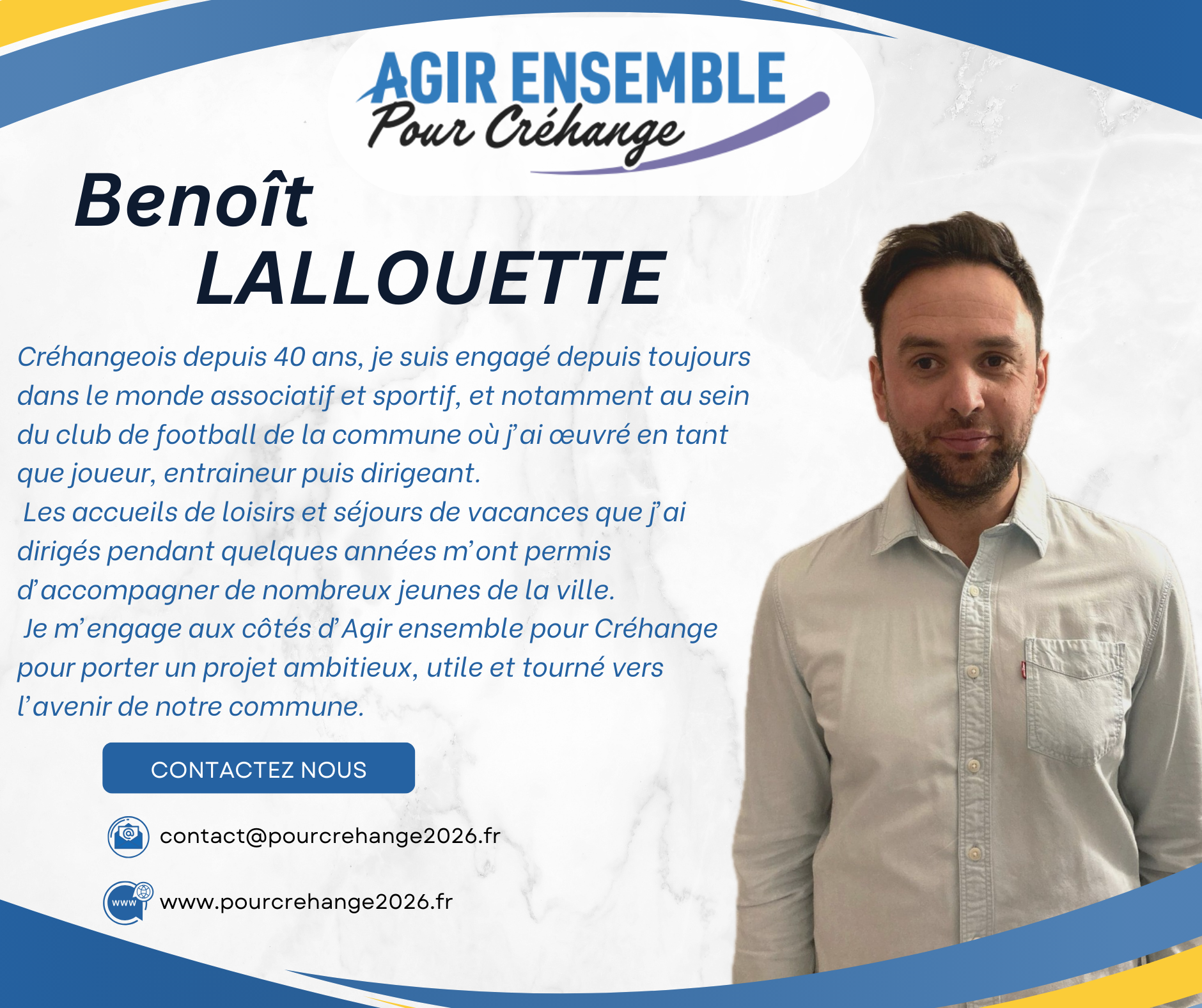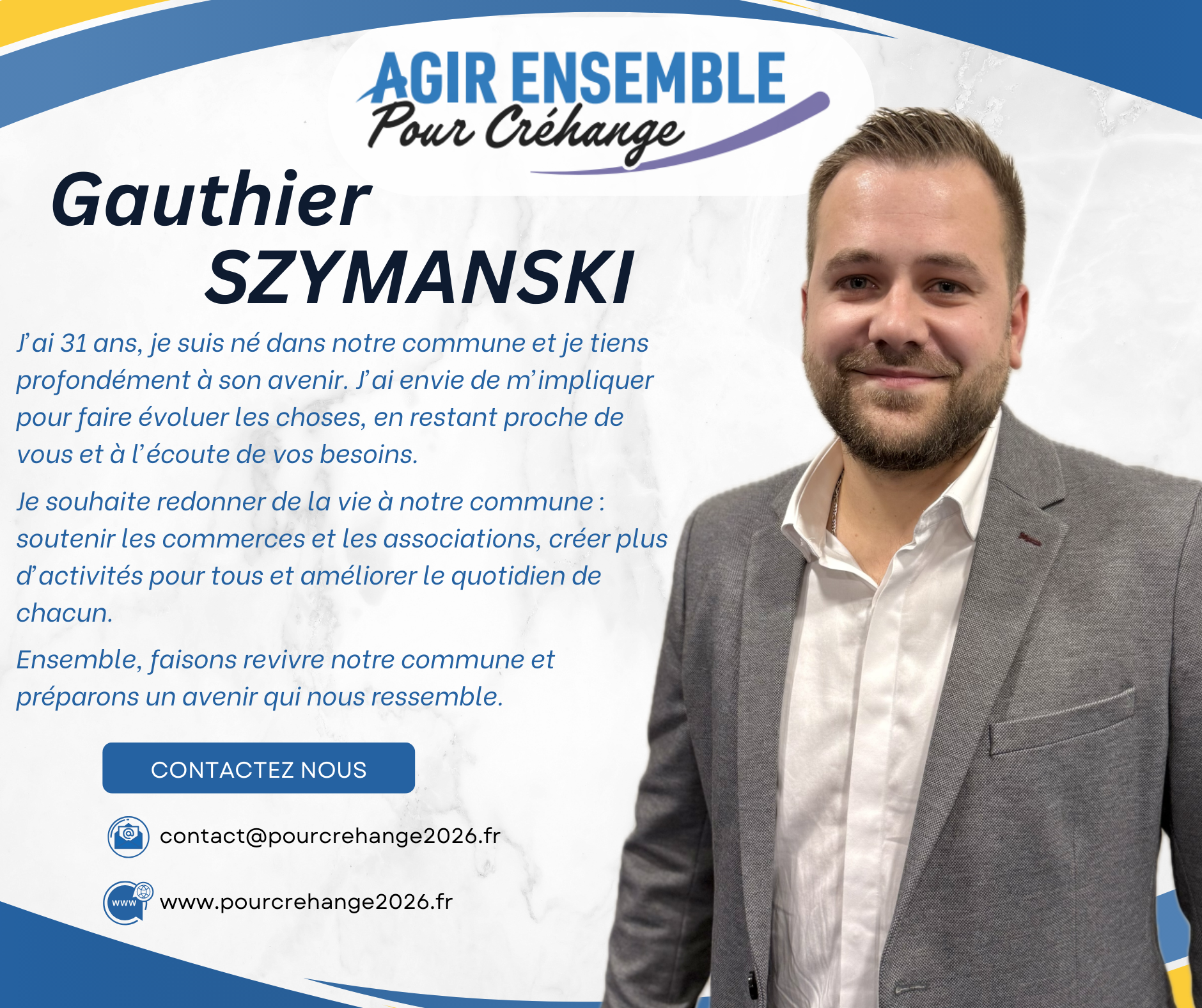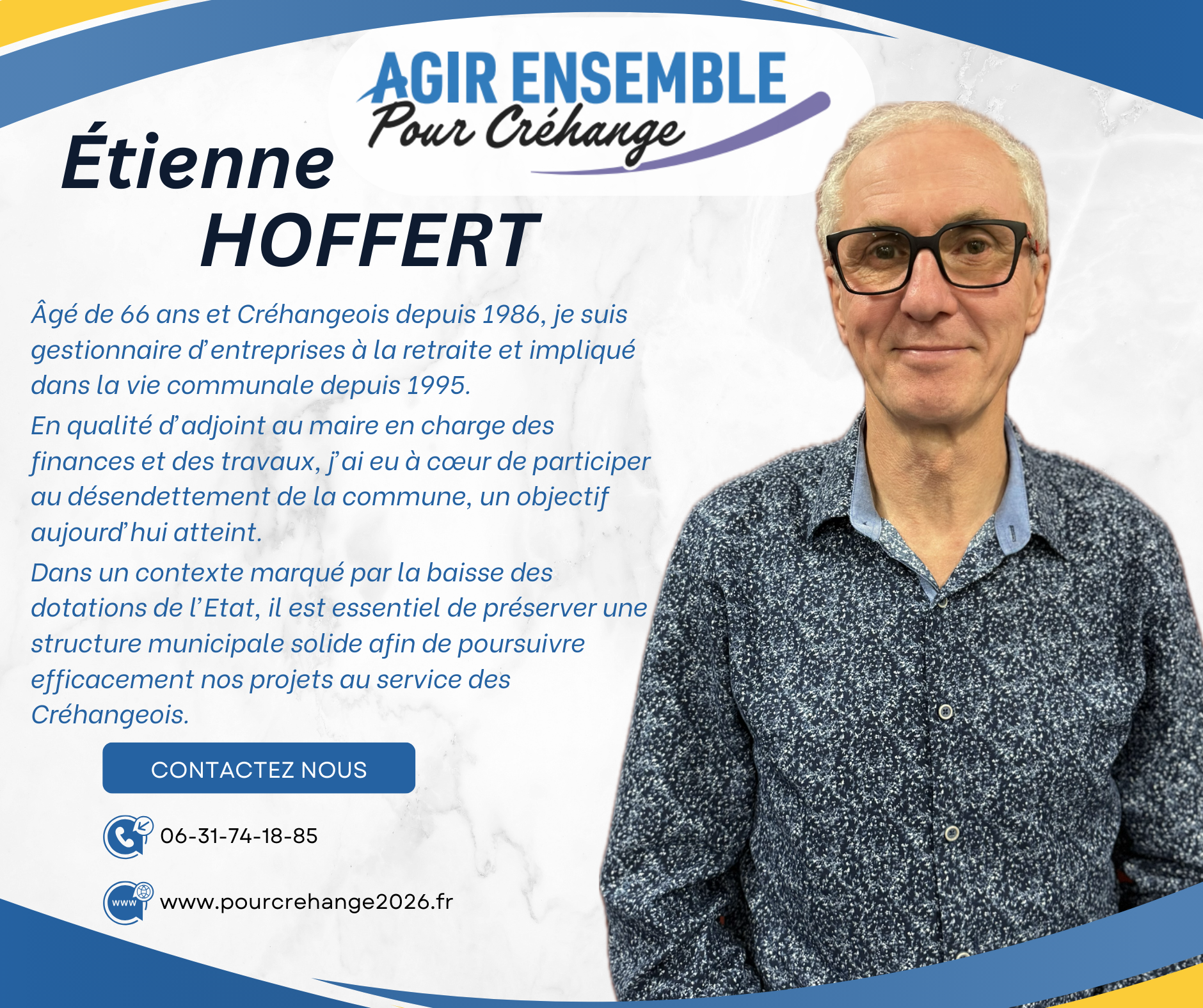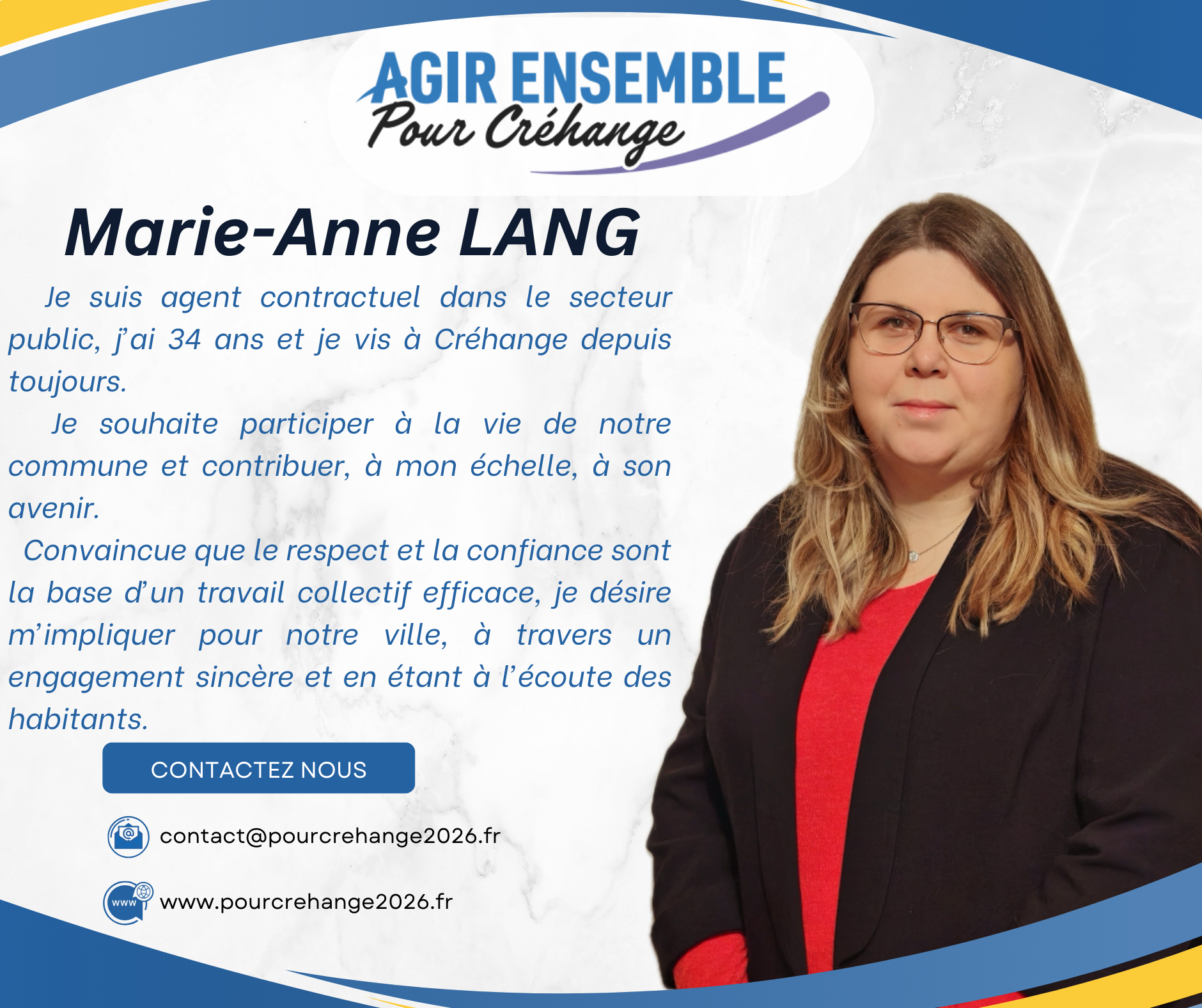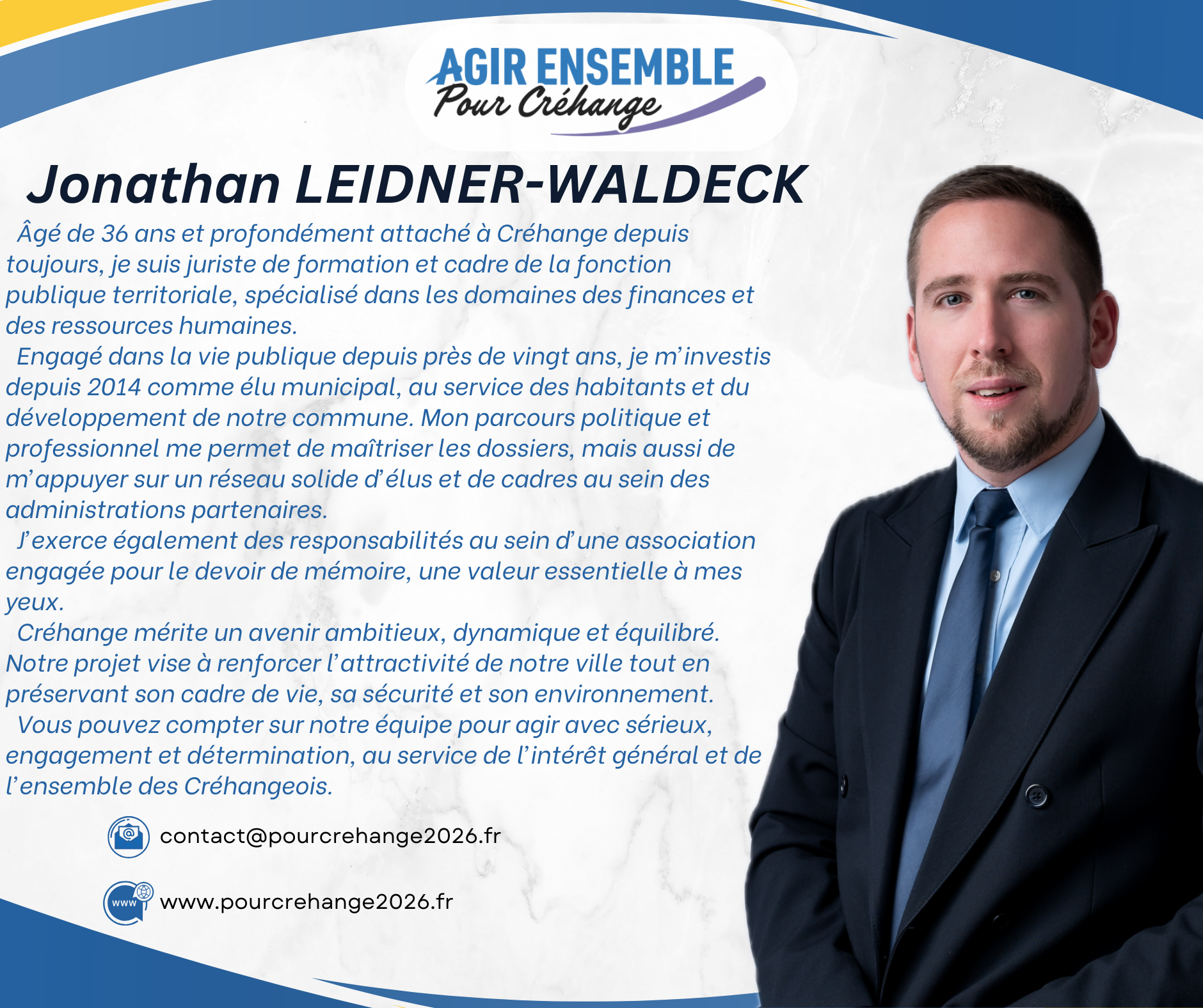 C’est cet équilibre qui nous permettra d’être efficaces dès le premier jour au service des Créhangeoises et des Créhangeois.